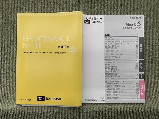 お車の取扱説明書・メンテナンスノート(記録簿)もございますのでディーラーで安心もお買上げ下さい。
