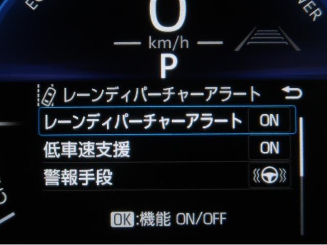 レーンディパーチャーアラートとは車線、又は走路からの逸脱の可能性を警告すると共に、車線、又は走路からの逸脱を避けるためのハンドル操作の一部を支援する機能です。詳細は販売店スタッフまでお尋ね下さい。