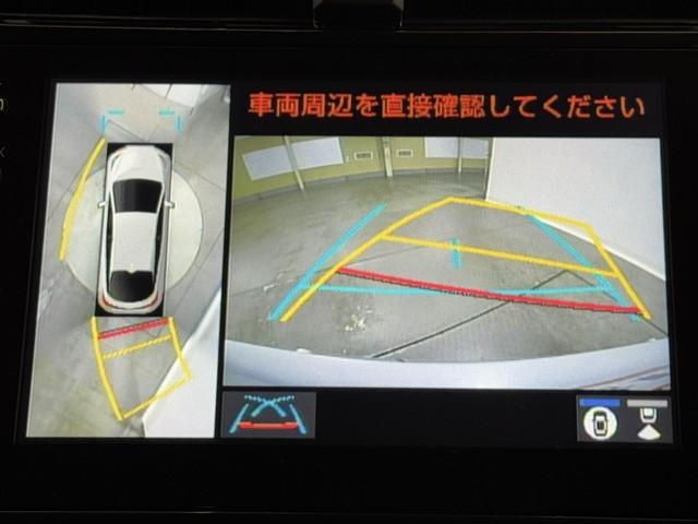 パノラミックビューモニターシステムが付いているので車の上から見た映像が確認できますよ。 一目で車両周辺の情報を確認できますが、直接安全をご確認下さい。