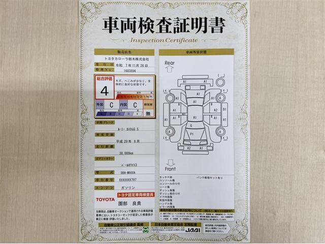 トヨタ自動車が認定した検査員が、厳正に検査した車両検査証明書を発行しています。キズの程度や場所を展開図で分かりやすく表示しているのでおクルマの状態がすぐ分かります。