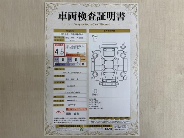トヨタ自動車が認定した検査員が、厳正に検査した車両検査証明書を発行しています。キズの程度や場所を展開図で分かりやすく表示しているのでおクルマの状態がすぐ分かります。