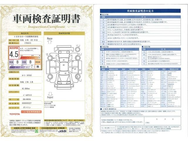 ◆車両検査証明書◆修復歴やクルマの状態を正しく評価できる「トヨタ認定車両検査員」が1台1台クルマの状態を評価。総合評価は10段階、内装・外装は5段階で点数表示。クルマ選び・購入前の安心をお届けします!