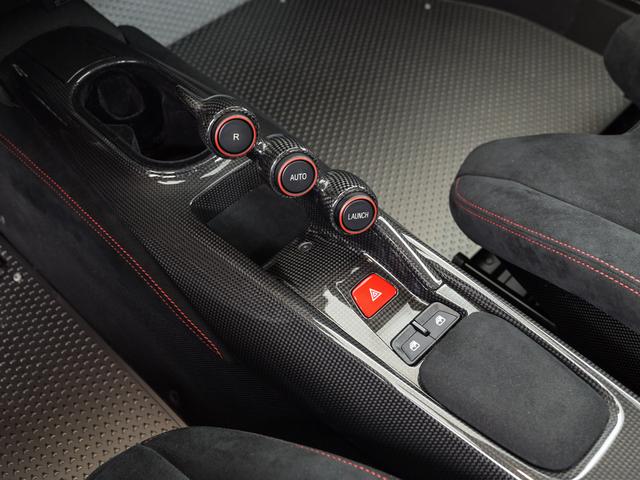 センターブリッジはカーボン製で、限定車LaFerrariのコンソールをモチーフとしたデザインとなっています。リバース・スイッチ、ローンチコントロールなどが配置されています。