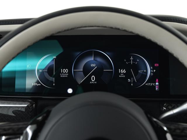 23インチのブラックバッジホイールとダーククローム仕上げのスピリット・オブ・エクスタシーが、存在感をさらに際立たせています。