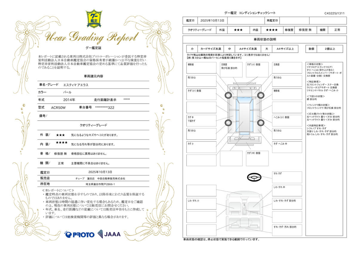 走行距離 | 10.8万km | 修復歴 | なし |